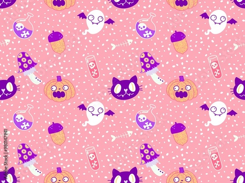 Halloween cute pumpkins seamless monsters pattern for wrapping paper and fabric