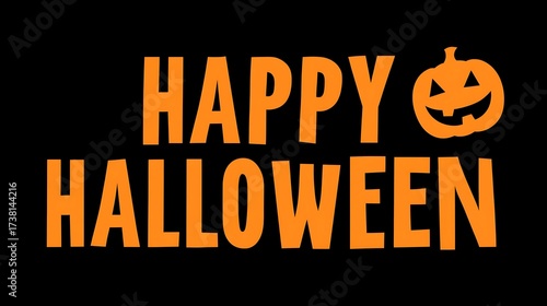 Halloween greeting card with Happy Halloween text pumpkin smile orange and black vector minimal poster