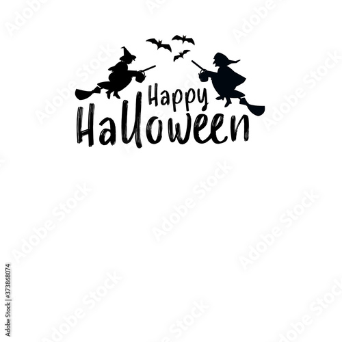 Halloween greeting. Flying witches and bats silhouette.