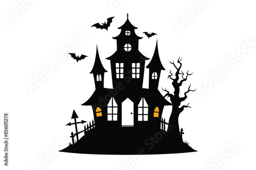 Halloween house vector illustration, silhouettes of haunted house, Halloween house silhouette