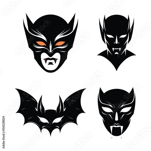 Halloween masks and bat silhouette
