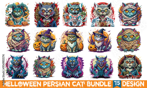Halloween Persian Cat T-Shirt Design, Hand Drawn Lettering Phrase Isolated on White Background. Calligraphy Graphic Design Typography Element. Hand Written Vector Sign, SVG Art