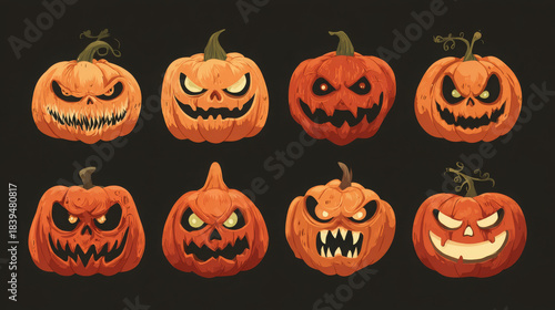 Halloween pumpkin jack-o’-lantern face element vector set.