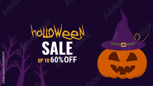 Halloween sale promo banner template offer design.