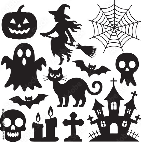 Halloween Silhouette Bundle – Witch, Pumpkin, Bat & Haunted House Spooky Halloween Silhouettes – Vector Set for Craft and Design Scary Halloween Vector Silhouettes – Ghosts, Skeletons & More Hallow