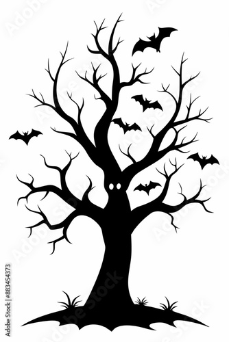 Halloween Tree and Bat Silhouette Vector - Spooky Printable Graphic Design