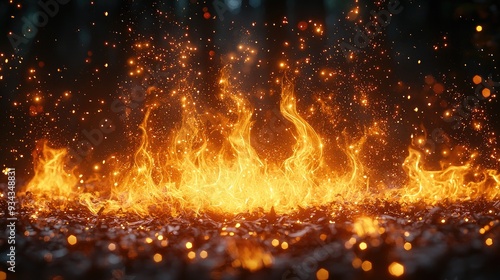 Halloween Witch. Fire embers particles over a black background. Fire sparks background—abstract dark glitter fire particles lights.