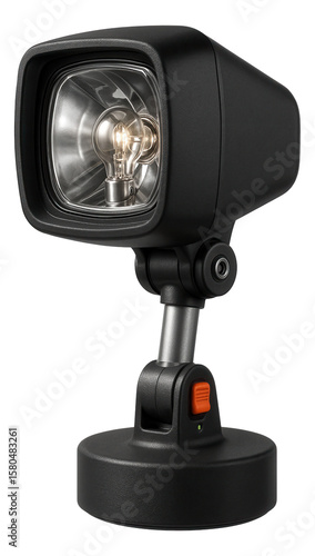 Halogen work lamp with a magnetic base, useful for DIY projects in a garage.