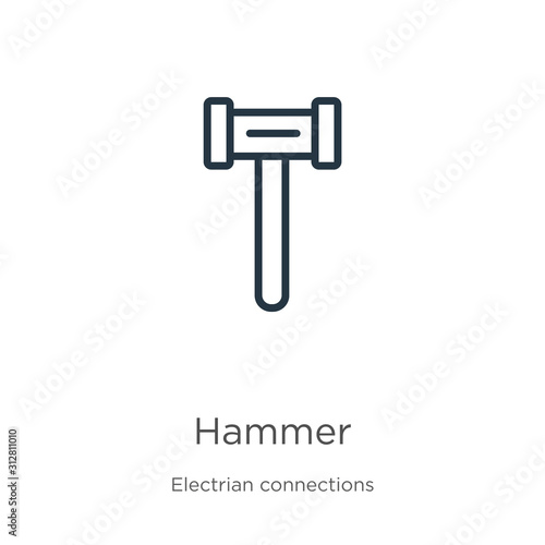 Hammer icon. Thin linear hammer outline icon isolated on white background from electrian connections collection. Line vector sign, symbol for web and mobile