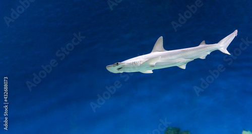 Hammerhead shark underwater side view. Close-up. Underwater world.