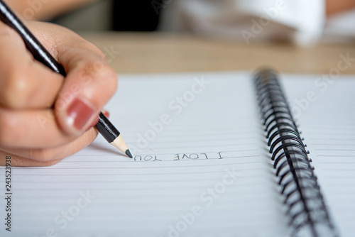 Hand and pencil pictures of students writing Education concept With copy space