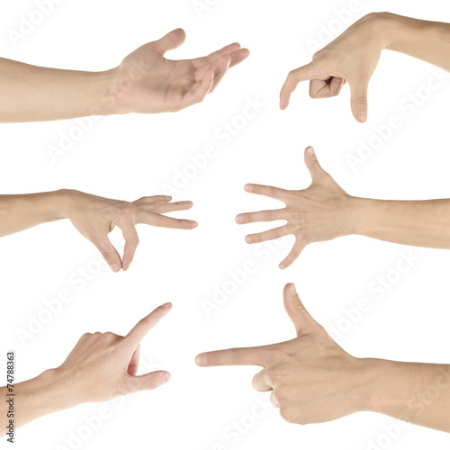 Hand collage, gestures set isolated on white