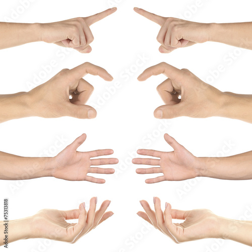Hand collage, gestures set isolated on white