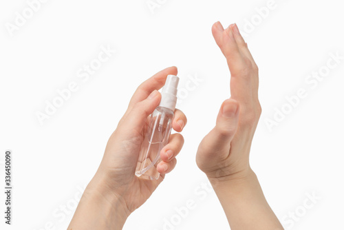 Hand disinfection isolated on white background.