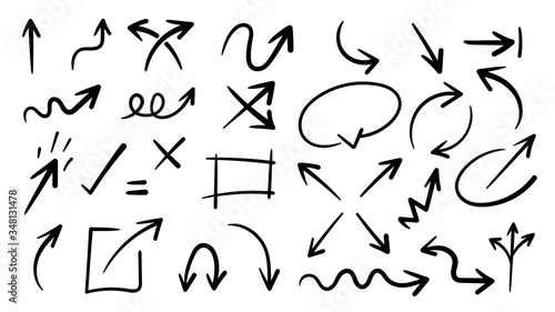 Hand drawn arrow vector icons set. sketch arrow design for business plan and education.