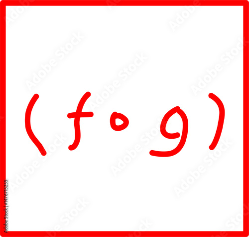 hand drawn composition symbol of function in mathematics, red math symbol in doodle style