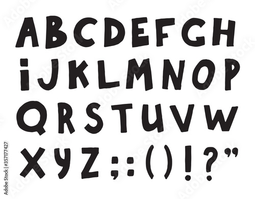 Hand drawn doodle font. Sketch black alphabet letters