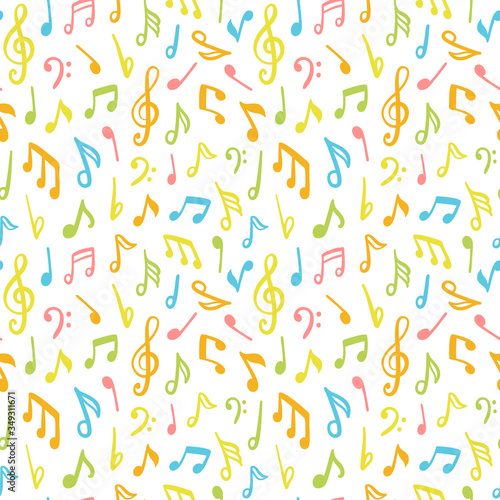 hand drawn doodle music notes seamless pattern