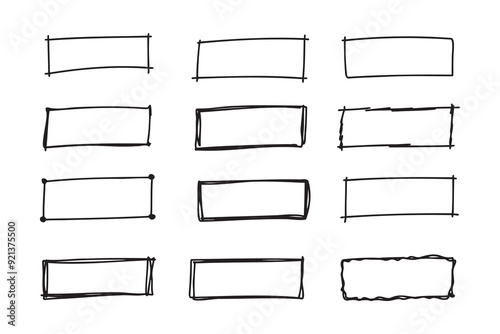 Hand drawn doodle vector rectangle frames. Grungy scribble rectangle frames. Doodle geometric borders. Pen ink empty black text boxes set.