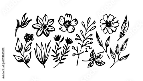 Hand Drawn Floral Elements flowers leaves