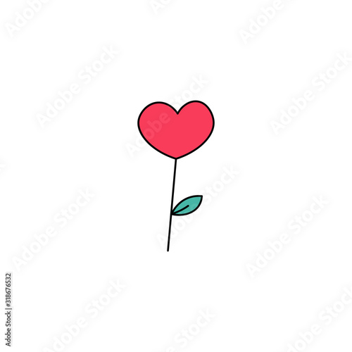 Hand drawn flower heart flat vector icon isolated on a white background.Valentine's day concept.