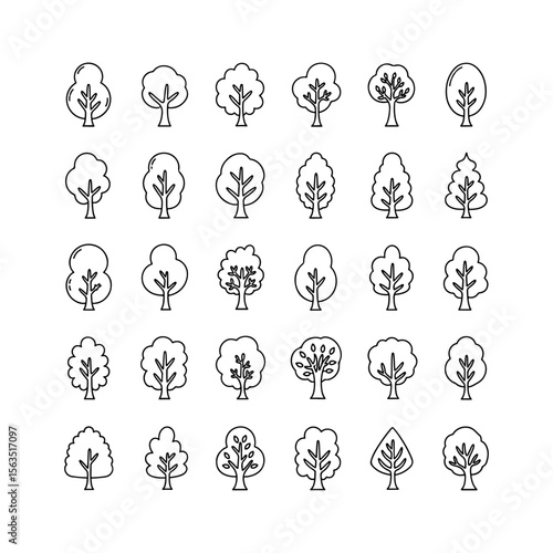 Hand drawn Forest Minimal Tree Line Icons Set Silhouettes Collection