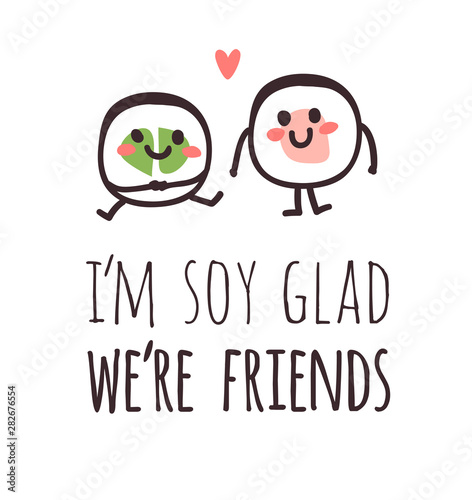 Hand drawn illustration sea food emoticon and quote. Creative ink art work Asian dinner. Actual vector drawing sushi roll emoji and text