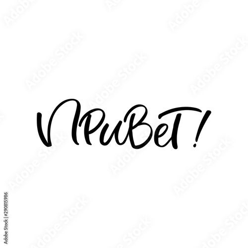 Hand drawn lettering card in russian. The inscription: Hello. Perfect design for greeting cards, posters, T-shirts, banners, print invitations.