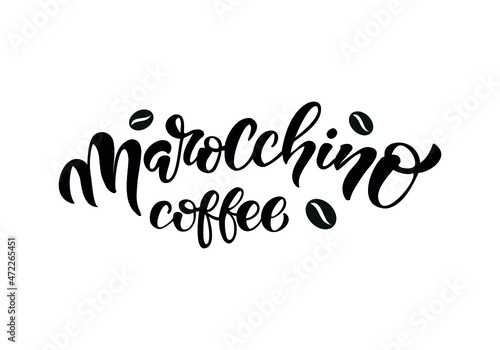 Hand drawn lettering coffe marocchino. Vector illustration. Typography text design for a coffee house.