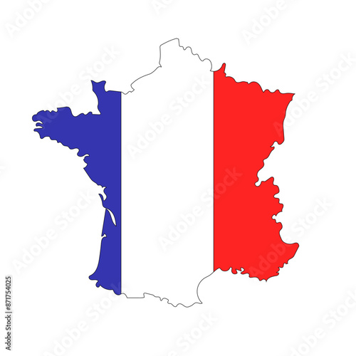 Hand drawn map of France with national French flag. Silhouette, Europe geography. Vector isolated on white background.