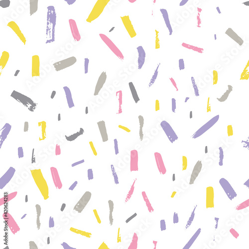 Hand drawn modern pattern of brush stroke. Vector seamless abstract background in grey and yellow colors.