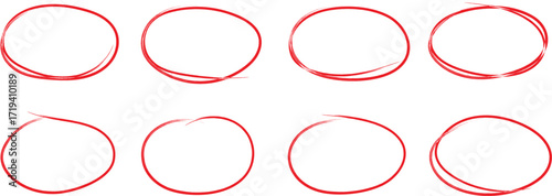 hand drawn red circle. Highlight hand written red color circle. Highlighting marking circle elements