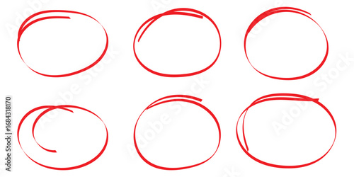 Hand drawn red circle icon, rough sketch style with textured brush stroke, simple outline for highlights, marks, labels, emphasis, or creative design. Vector illustration. EPS 10