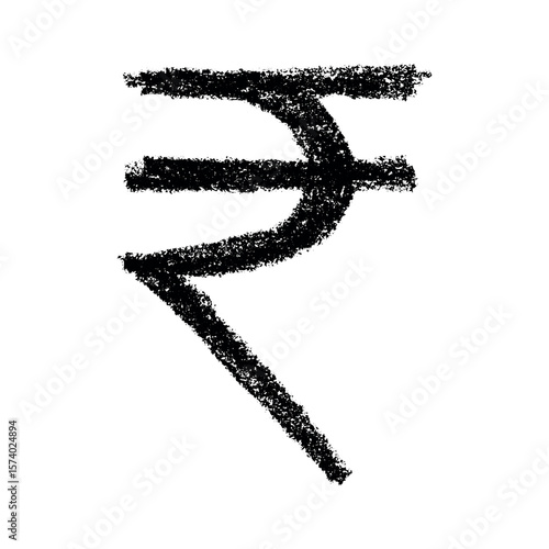 Hand drawn rupee currency symbol. Brush stroke doodle. Single element for design