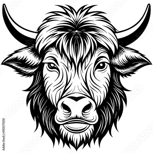 Hand drawn vector illustration of a cute yak face in a flower crown, with lettering quote Spring Is Here. Isolated objects on white. Scandinavian style flat design.
