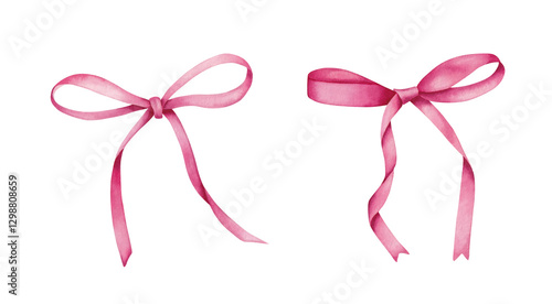 Hand drawn watercolor bows. Illustration for romantic invitations design, decorating.