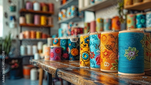 hand embroidery art, colorful embroidery hoops adorn the craft room wall, showcasing the beauty of handcrafted clothing with artistry