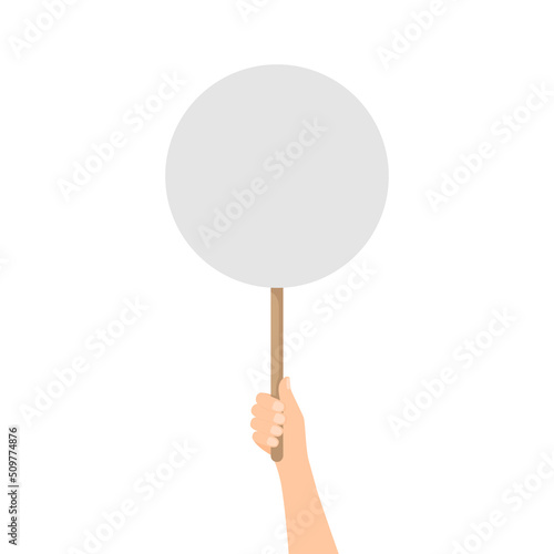 Hand holding blank placard. Demonstration and protest concept. Vector illustration