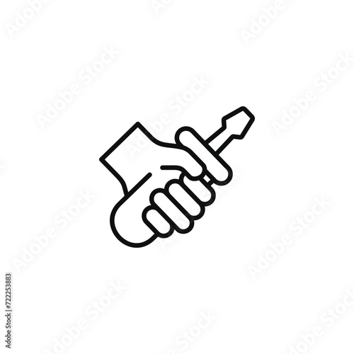 Hand holding screwdriver line icon isolated on transparent background