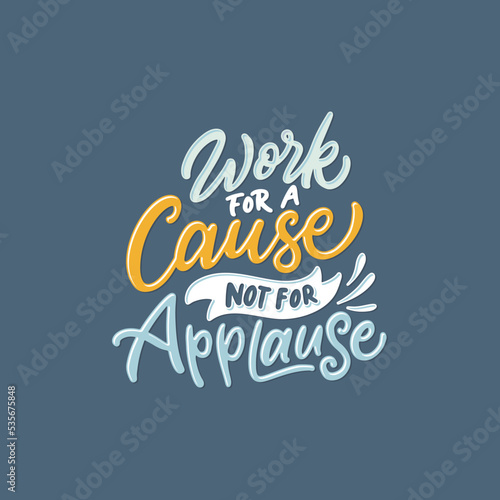 Hand lettering and typography daily motivation quotes. Work for a cause not for applause. Inspirational quotes about dreams. Poster design.