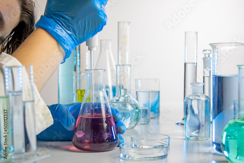 Hand of a scientist taking samples with a pipette
