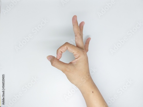 Hand ok sign isolated on white background