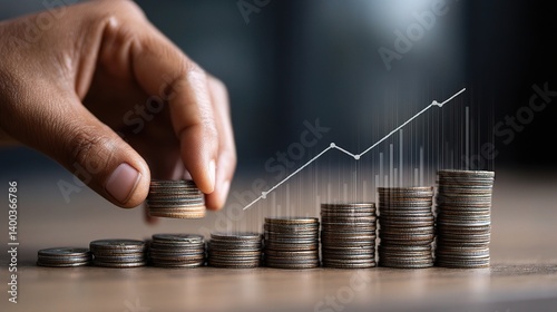Hand Placing Coin on Stack Representing Financial Growth and Success
