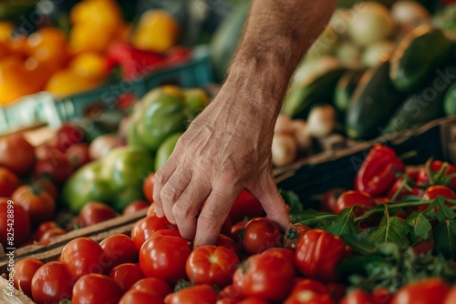 Hand Selecting Fresh Organic Produce at Local Farmer's Market - Emphasizing Natural Colors and Freshness