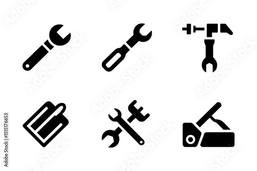 Hand tools wrench hammer repair equipment set icon