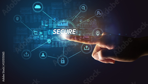Hand touching cybersecurity button concept