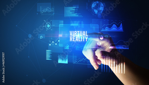 hand touching digital button, modern technology concept