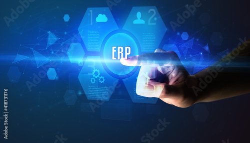 Hand touching ERP inscription, new technology concept