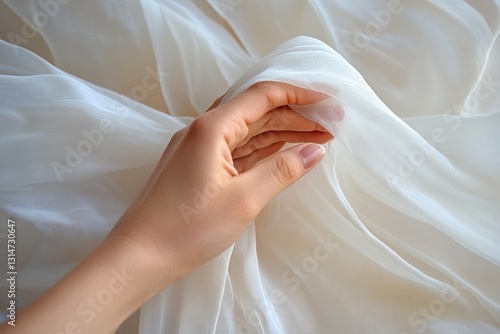Hand touching fabric in motion .