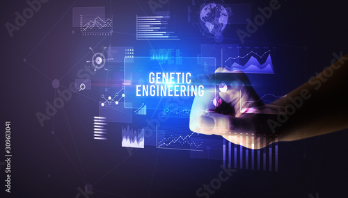 Hand touching GENETIC ENGINEERING inscription, new business technology concept
